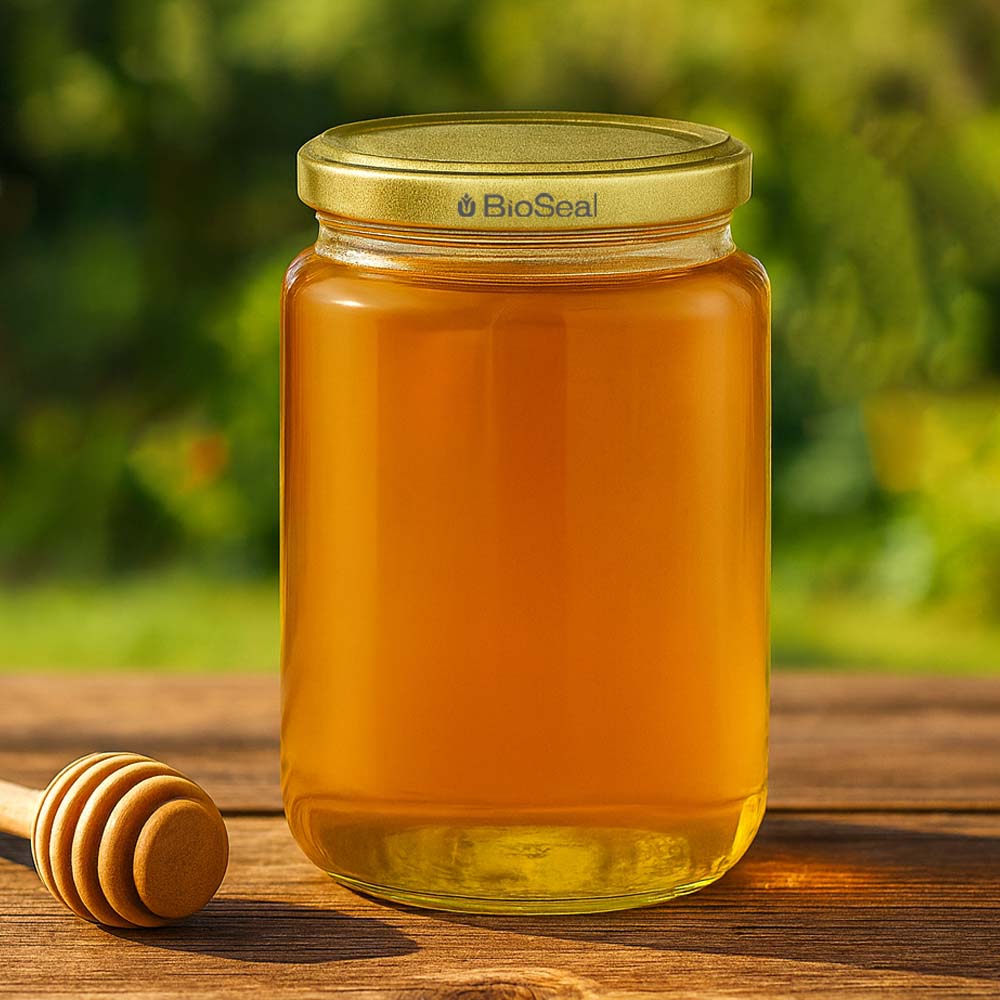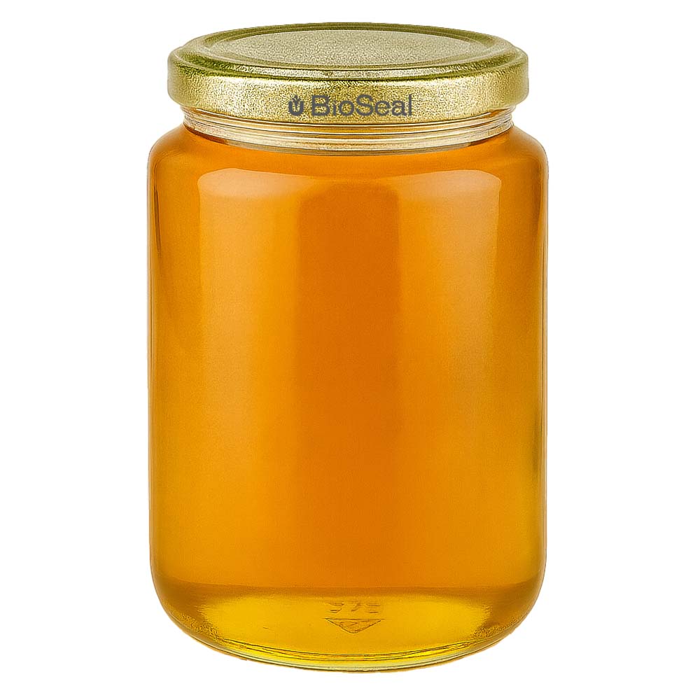 Hochwertiges 1000 g Honigglas mit elegantem goldenem BioSeal UNiTWIST-Deckel. Durch sein großes Fassungsvermögen eignet es sich perfekt für Familienportionen, große Abfüllmengen sowie die Direktvermarktung. Der goldene Deckel sorgt für eine edle und traditionelle Optik.