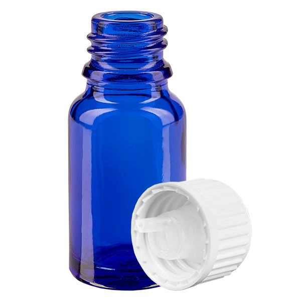 - Popis skleněné lahvičky: Skleněná lahvička je opatřena uzávěrem s uzávěrem: Sklo typu III (DIN 719 nebo nádoba třídy III podle DIN 52339-TO180). Modré sodnovápenaté sklo je bez chuti a zápachu. Je také chemicky stabilní, což znamená, že se do obsahu neuvolňují nežádoucí látky. Hladinu naplnění sklenice můžete vidět. Obsah je stále chráněn před přímým UV zářením. Tím je zajištěna kvalita výrobků citlivých na světlo.