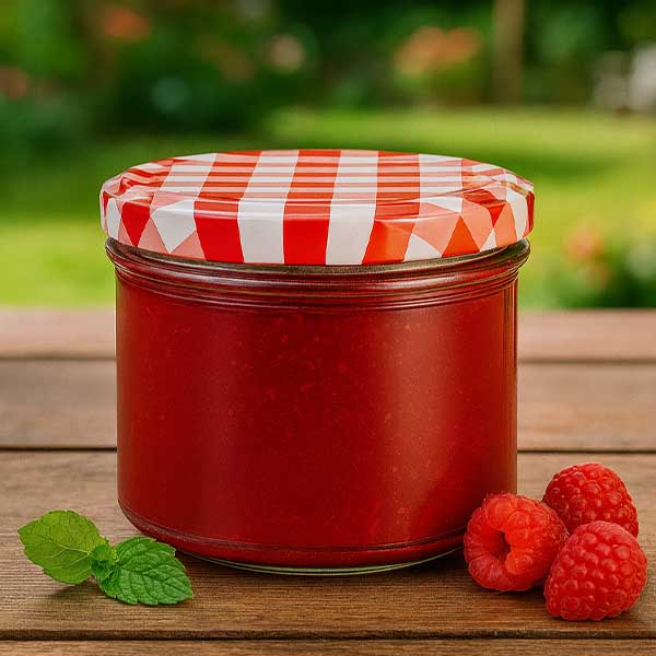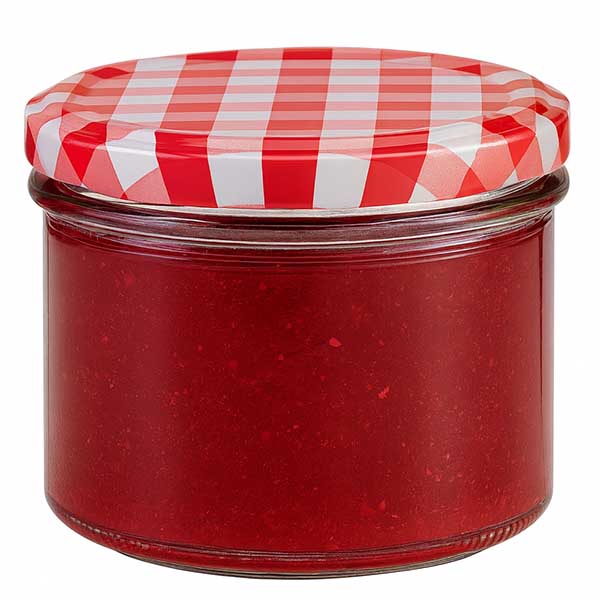 - Barva: Víčko kostkované červenobílé, těsnění bílé.