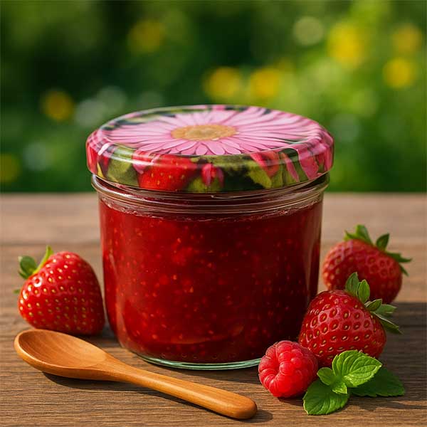 - Barva: Víčko s květinovým dekorem, bílé těsnění.
