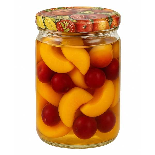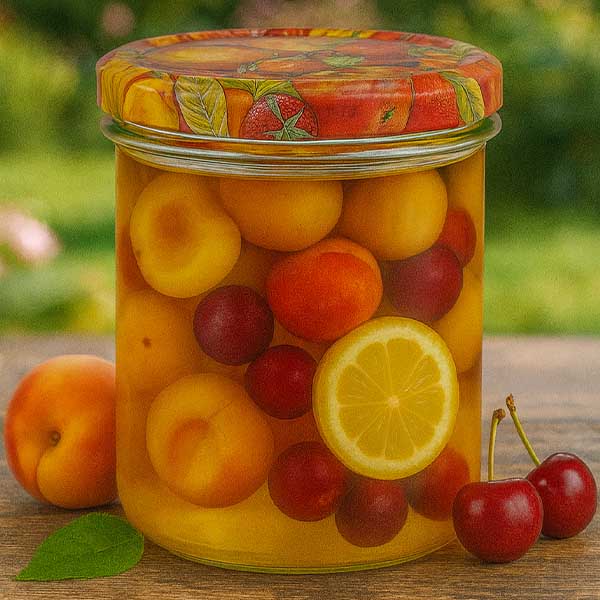 - Barva: Víčko s dekorem ovoce, bílé těsnění.