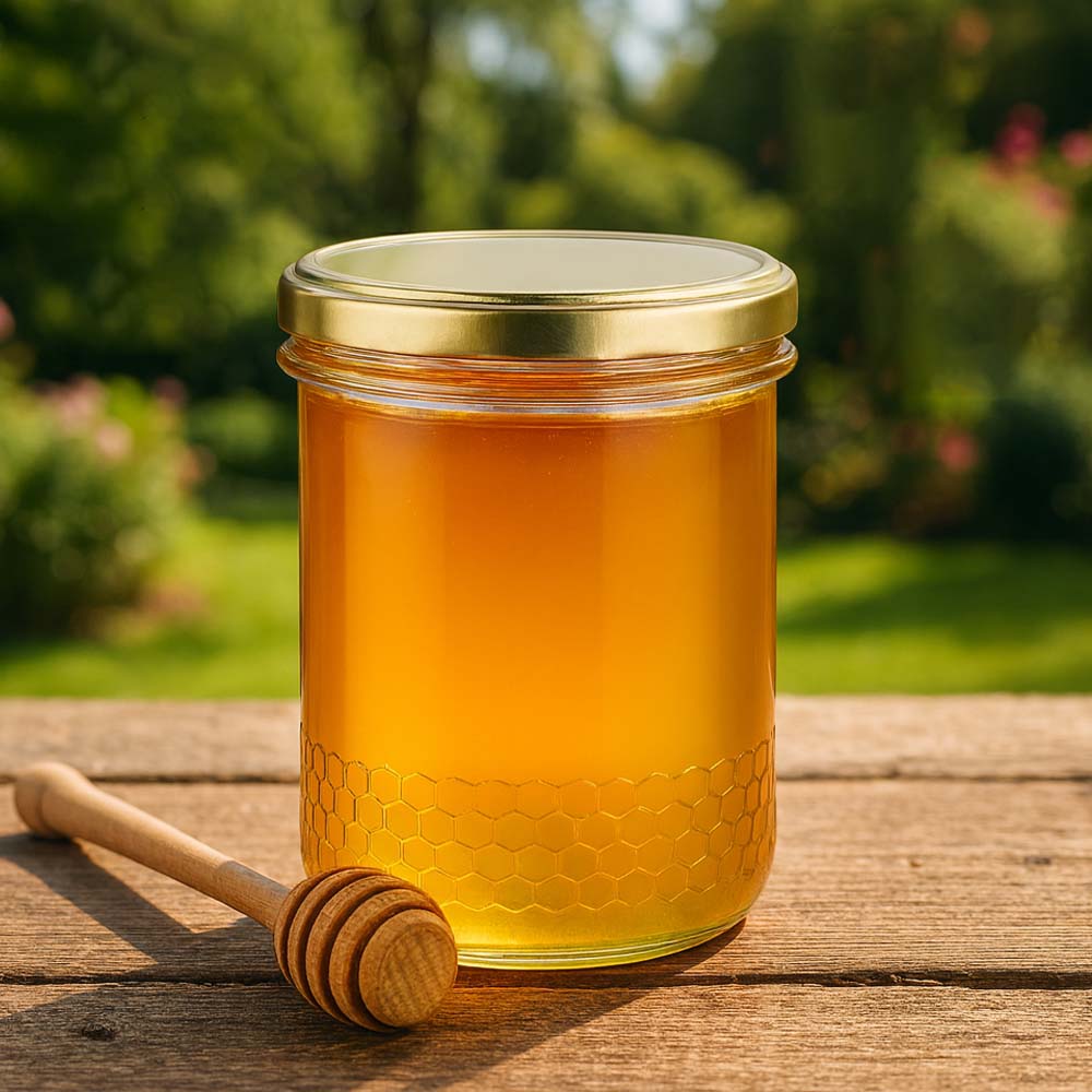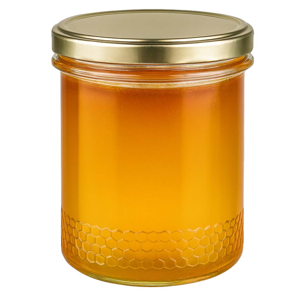 Hochwertiges 560 g Honigglas mit elegantem goldenem BasicSeal UNiTWIST-Deckel. Perfekt für mittlere bis größere Abfüllmengen, Direktvermarktung und ansprechende Präsentationen im Verkaufsregal. Der goldene Deckel verleiht dem Glas eine edle Optik.