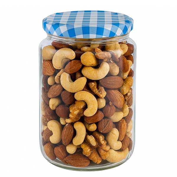 - Barva: Modrobílé kostkované víko, bílé těsnění.
