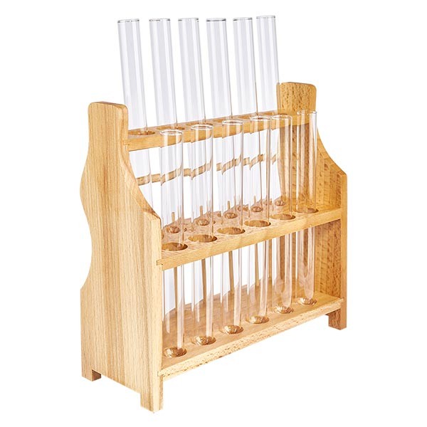 Dřevěný stojan na zkumavky s 12 zkumavkami plus sodnovápenatými 160x16